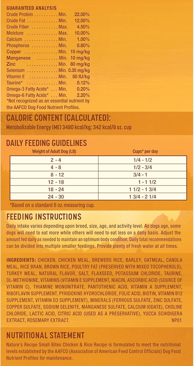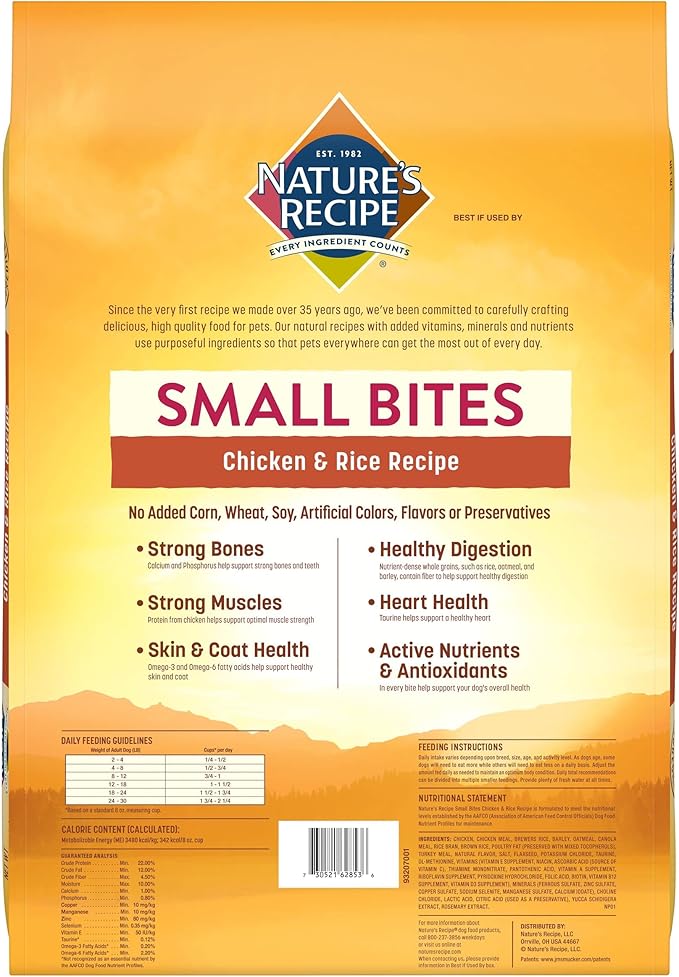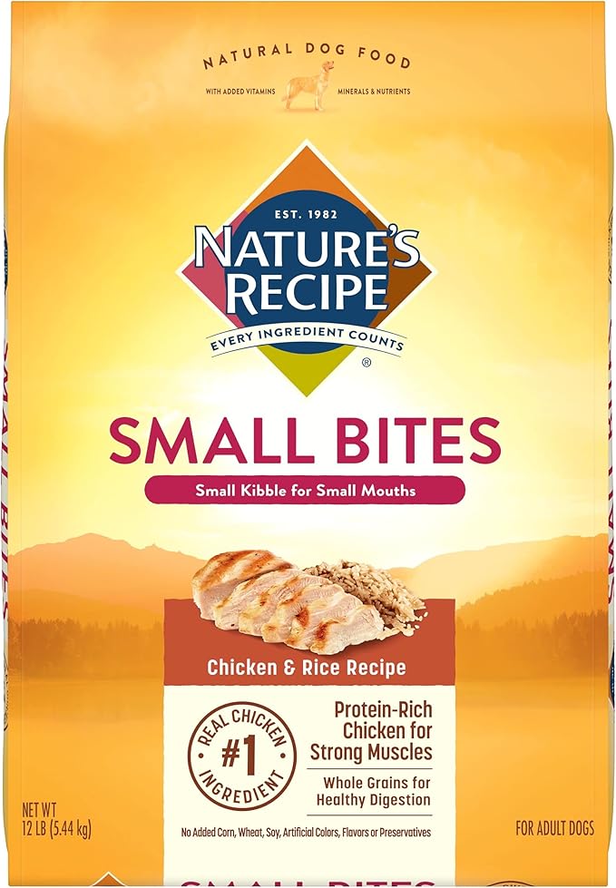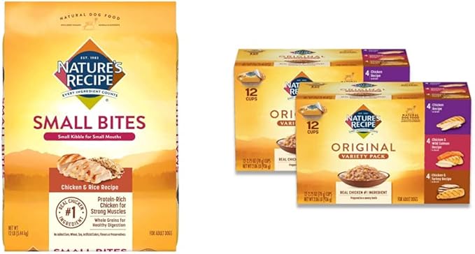 Nature's Recipe Small Bites Chicken & Rice 12 Pounds Dry Dog Food + Chicken Recipes Variety Pack 2.75 Ounce (Pack of 24) Wet Dog Food Bundle