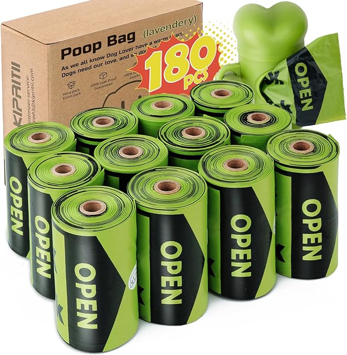 KIPRITII Strong-Endurance Dog Poop Bag Set with Dispenser & Leash Clip, Thick Waste Poop Bags for Puppy/Small/Medium/Large Dog & Cat