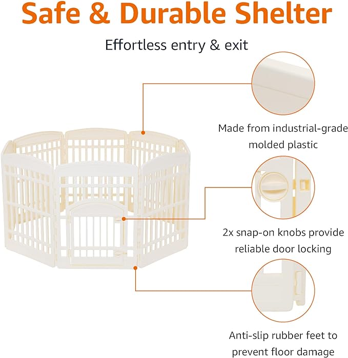 • Includes an 8 panel, pet exercise playpen made of durable commercial-grade molded plastic