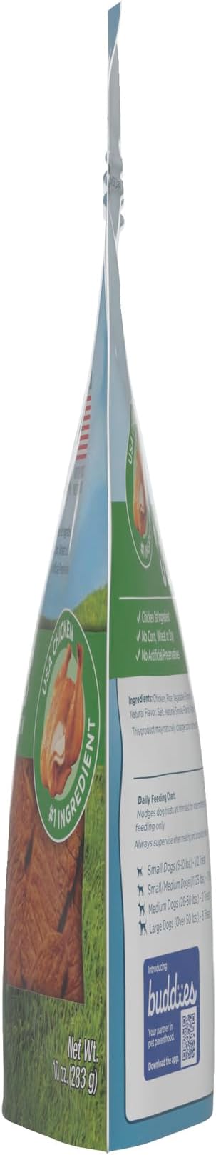 • PACKAGING MAY VARY: Contains one (1) 10oz bag of BLUE Nudges Jerky Cuts Natural Dog Treats, Chicken