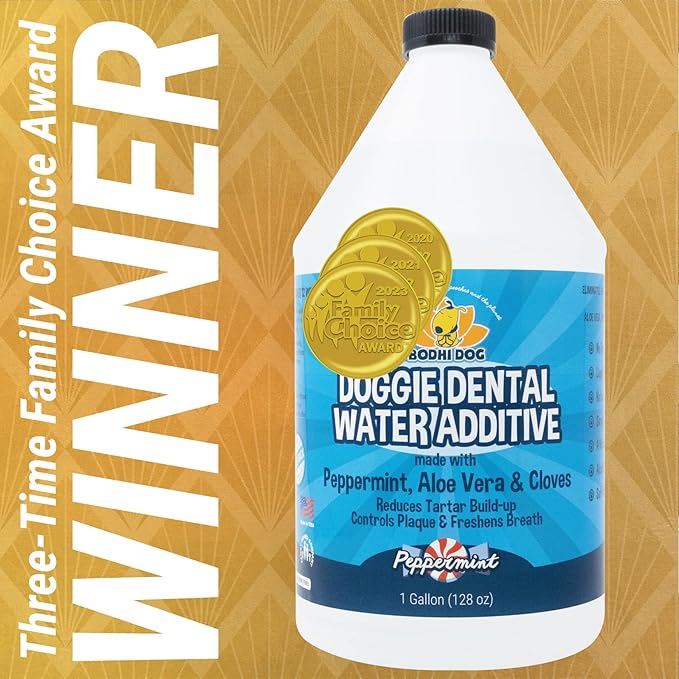 • AWARD-WINNING PROFESSIONAL GRADE QUALITY: Three-time winner of the Family Choice Awards. A coveted consumer award program recognizing outstanding pet products while enriching the lives of our fur friends. Our dental care water supplement has a wonderful, sweet taste that makes canine oral care a pleasant experience for your pooch and easy on you! Dogs drink water as normal, enjoying the refreshing light taste of sweet honey mint and you enjoy their delightful fresh breath and improved dental hygiene. It's a win-win!