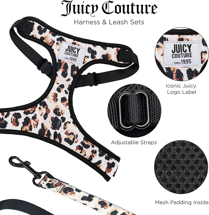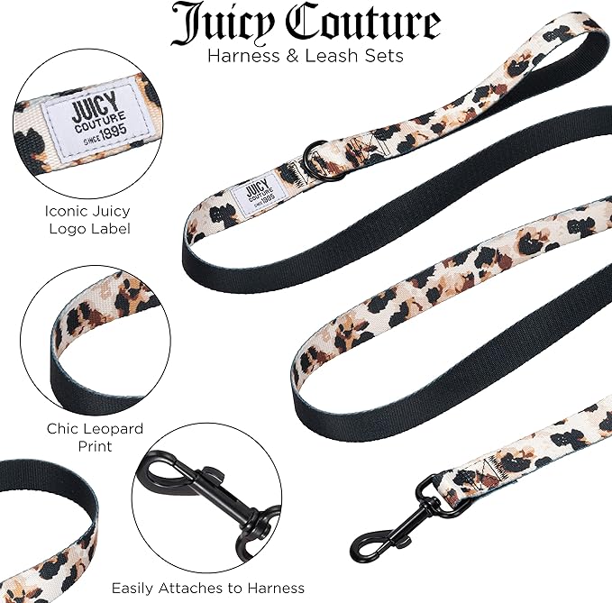 Juicy Couture Leopard Print Dog Harness and Leash Set – Adjustable Puppy Harness with Puppy Leash & Mesh Padding Dog Harness, Large