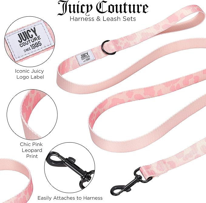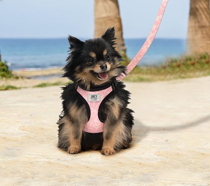 Juicy Couture Pink Camo Dog Harness and Leash Set – Adjustable Puppy Harness with Puppy Leash & Mesh Padding Dog Harness, X-Small