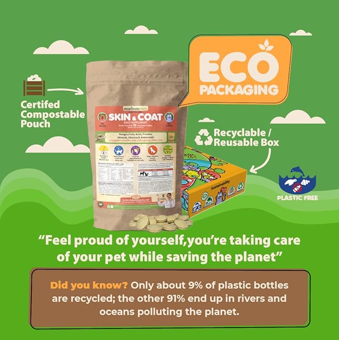 • ♻️ ECO-FRIENDLY PACKAGING: Be a part of the solution, not pollution! These joint supplements for dogs are securely packaged in a plastic-free, certified compostable bag that will naturally decompose after use, ideally, without leaving any toxic residue; the pouch (bag) is placed within a reusable/recyclable box designed by the artist.