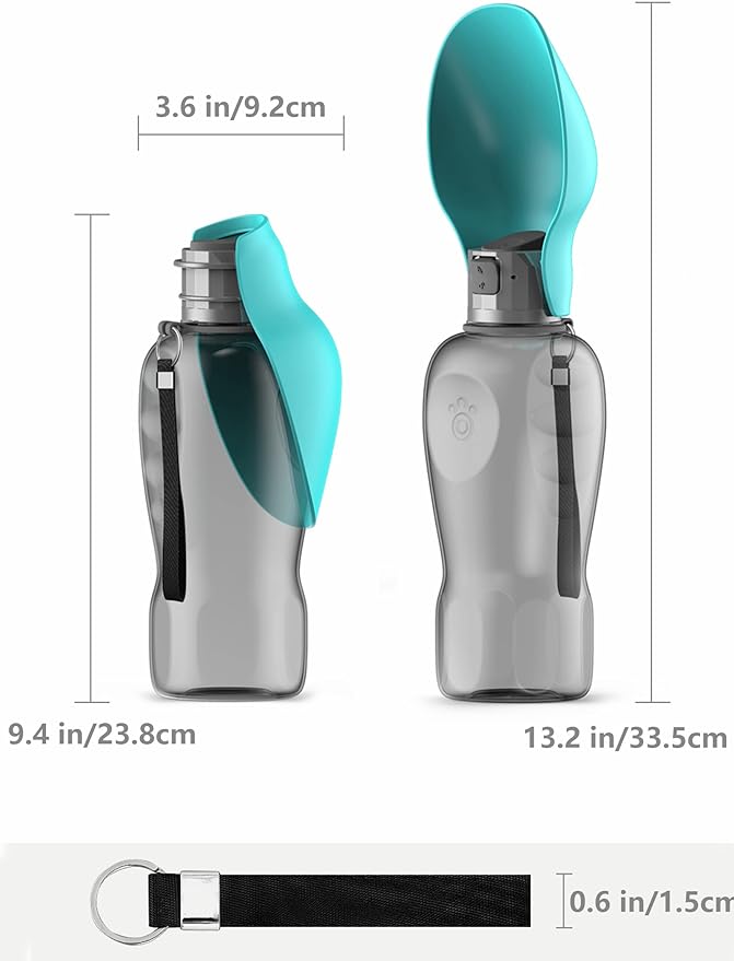 • 【 CONVENIENT TO CARRY 】enough capacity 27 oz and compact water bottle design is great for your pet dog or cat when outdoor walking, running, hiking, travelling or playing, etc. You can put it into backpack or hang on your hand with sling rope, very easy to carry to anywhere you want.