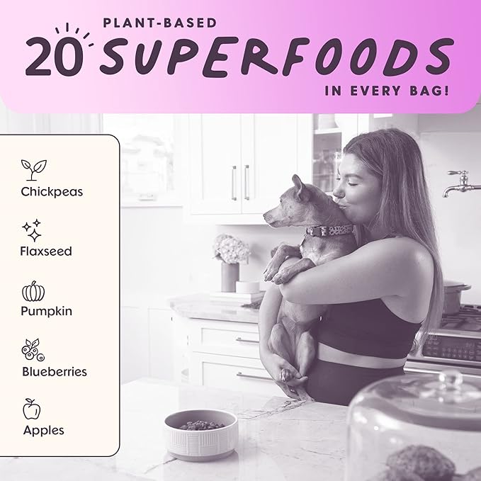 • NATURAL INGREDIENTS: Made with 20 plant-based superfoods in every bag including flaxseed, pumpkin, apples, carrots, and cranberries. A delicious flavor enjoyed by all dogs, even picky eaters.