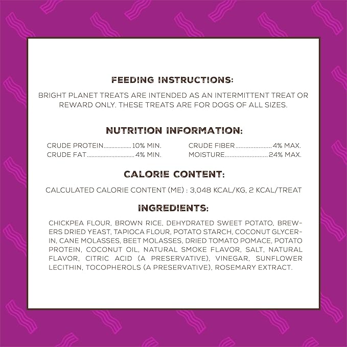 • EACH BAG HELPS PLANT A TREE. Every time you buy a bag of our vegan dog treats, we make a donation to help plant a tree. At Bright Planet Pet we make treats that are both better for your dog and better for the planet. Help reduce your dog’s carbon pawprint by treating with Bright Planet.