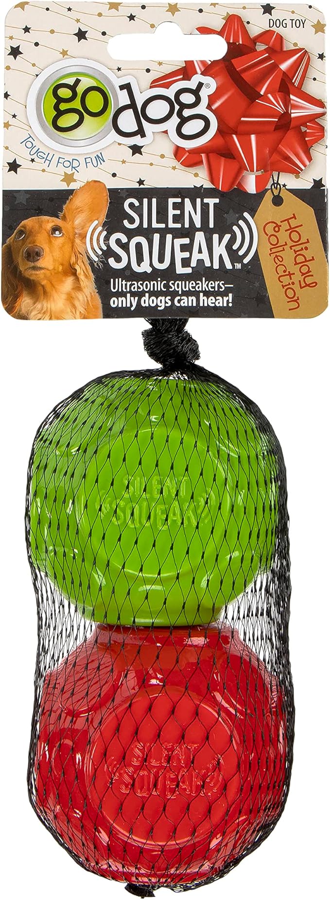 goDog (Set of 2 Holiday Collection Silent Squeak Ball Dog Toys, Ultrasonic Squeaker - Set of 2, Green & Red