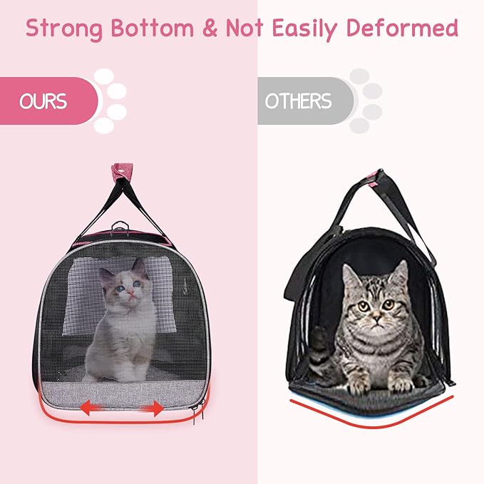 • Large Unique Side Bag: Storage bag is bright-pink, very fashional collapsible cat carrier. Break the dullness! Bag on the side can hold garbage bags, food or folding bowl for your pets.