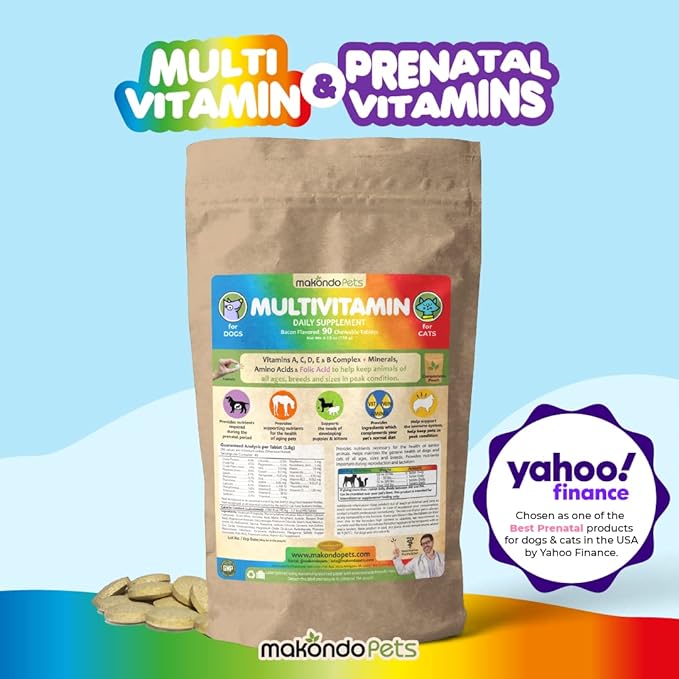 • TASTY BACON FLAVOR CHEWS – These chewable dog and cat vitamins can be given as treats or sprinkled over the food, making it easier to administer than liquid or powder supplements. Our pet tabs vitamins are MADE in USA and VETERINARIAN FORMULATED.