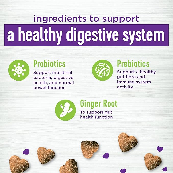 • Contains probiotics to support their digestive health and prebiotics to support immune system activity. Plus it’s made with ginger root to support gut health function