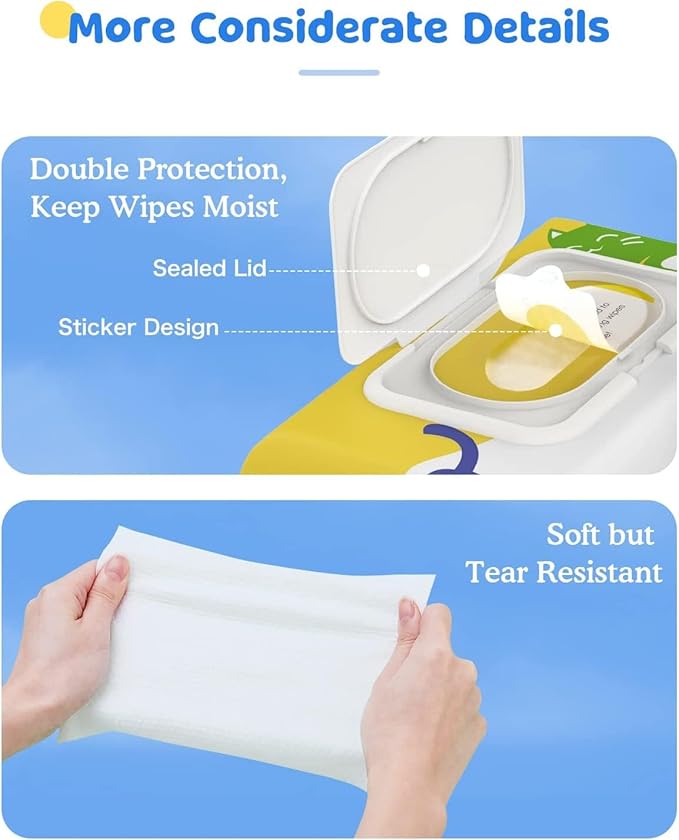 • 💧【Stay Fresh Lids】 This is a thoughtful design-Unique lid can keep the pet wipes fresh. Perfect for at home and on-the-go pet cleaning paw wipes.