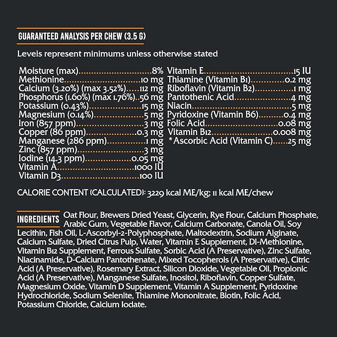 • Made in the USA, veterinarian formulated multivitamin & mineral soft chew with 21 beneficial nutrients