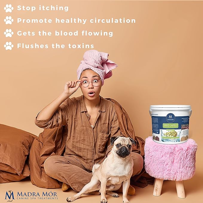 Worldwide Nutrition Bundle: Madra Mor Shed Safely Dog Essentials Mud Bath | Dog Grooming Dog Wash | Dry Skin for Dogs Treatment | Dog Itch Relief | 7.5lb Pail w Multipurpose Keychain