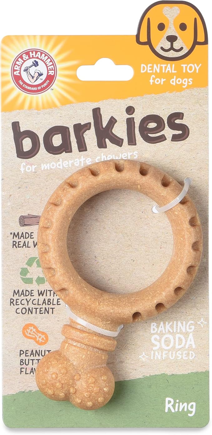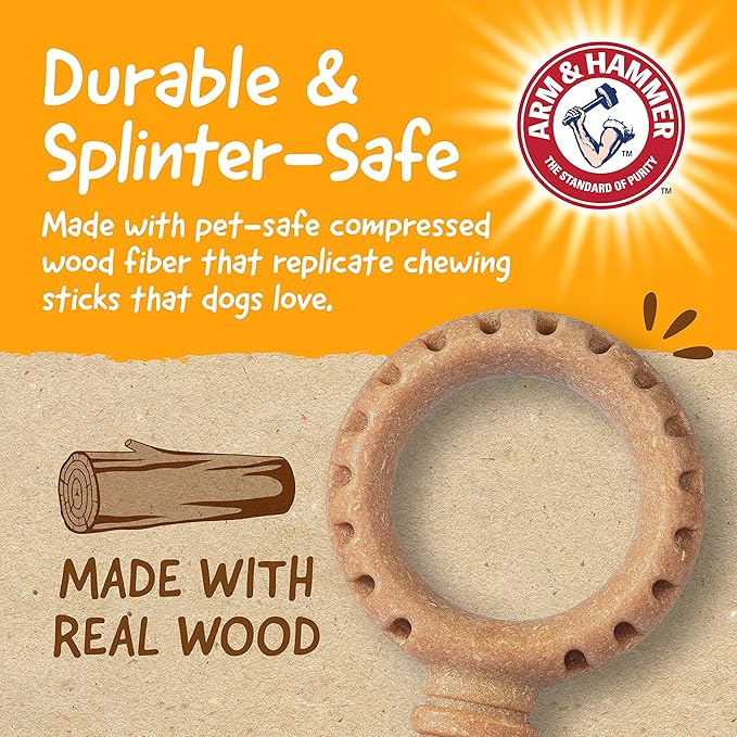 Arm & Hammer for Pets Barkies Ring Compressed Wood Collection, 5.5 Inch Peanut Butter Flavored Wood Blend Chew Toy for Dogs | Faux Stick, Splinter-Free, Safer & Durable Alternative to Chewing Sticks