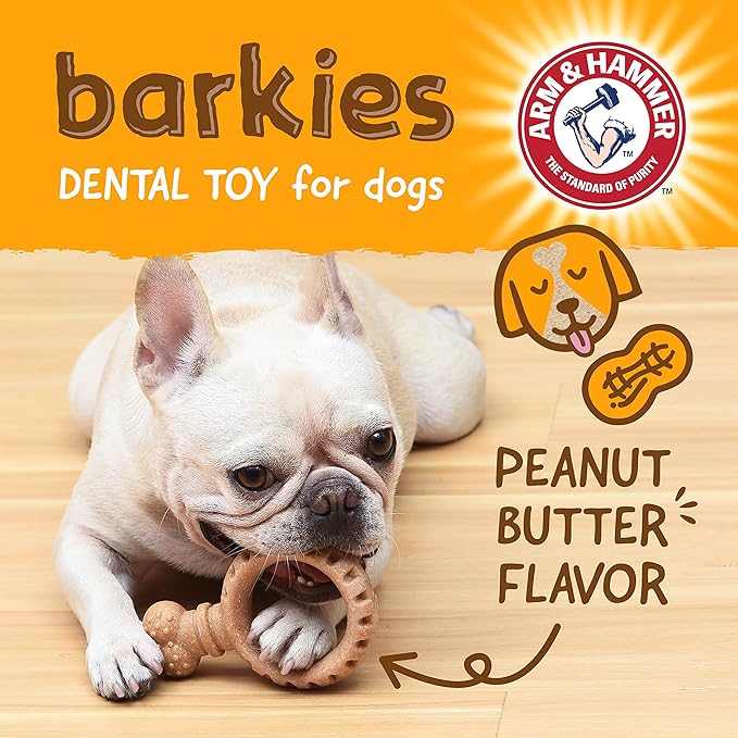 • Redirect destructive chewing into positive playtime with Barkies that act as both a fun toy and a healthy dental chew