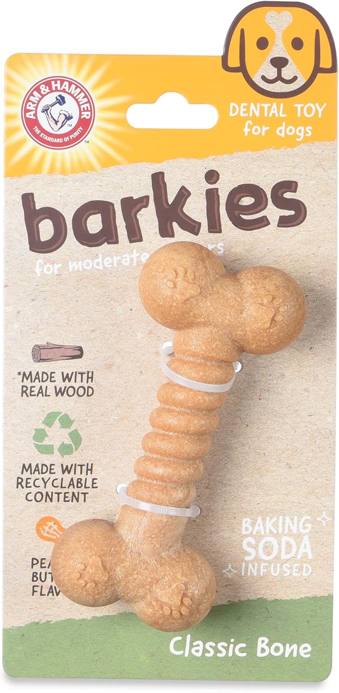 Arm & Hammer for Pets Barkies Classic Bone Compressed Wood Collection, 5 Inch Peanut Butter Flavored Wood Blend Chew Toy| Faux Stick, Splinter-Free, Safer & Durable Alternative to Chewing Sticks