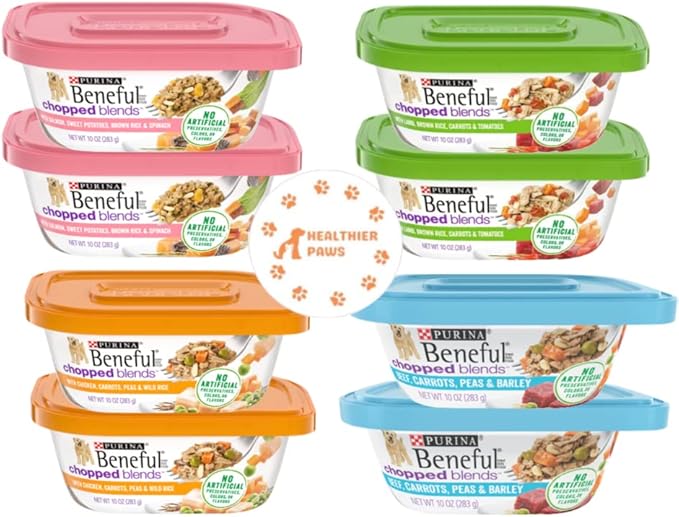 Beneful Chopped Blends Wet Dog Food 10 oz. Tub Bundle 4 Flavors 2 of Each Flavors, Total of 8 tub with Healthier Paws Sticker!!!