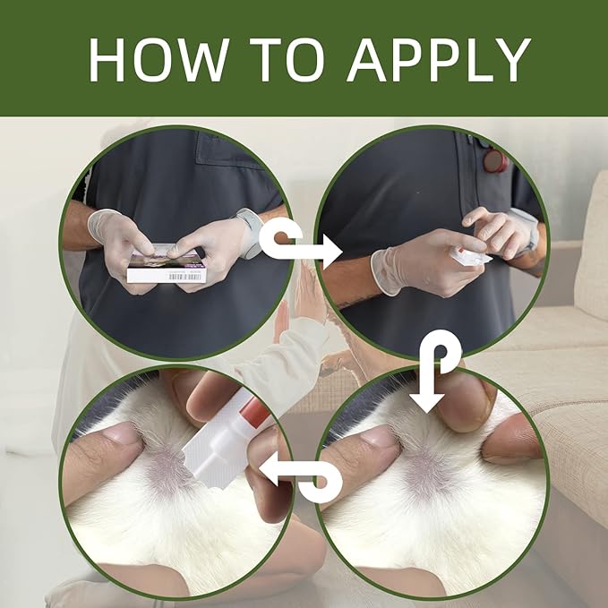 • USAGE METHOD:separate one tude from others——cut the tip open——use the tip to part the fur to reach your dogs skin——apply solution from neck to middle of back(or between shoulder blades)——allow application to dry——apply only once every 4 weeks.