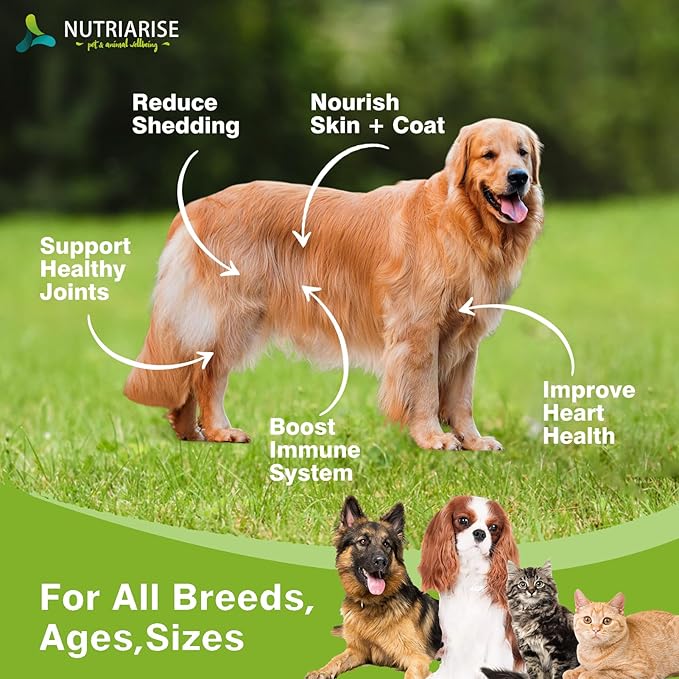 • PROACTIVE PROTECTION FOR YOUR PUP: Nutriarise omega 3 fish oil for dogs and cats is rich in omega fatty acids that are essential to support healthy skin & coat and also help support heart & brain, hip & joint health.