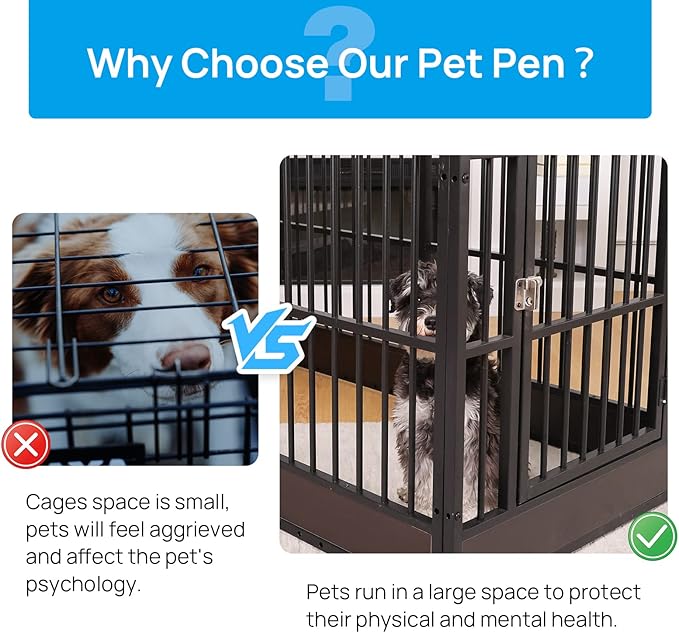 • 【Convenient for Pets to Enter and Exit】 This Dog pens with upgraded locks are designed to prevent dogs from opening and escaping on their own. For double security even if you have a naughty pet. The panel with the door can be installed upside down so that it also takes care of the small size of the dog-safe access.