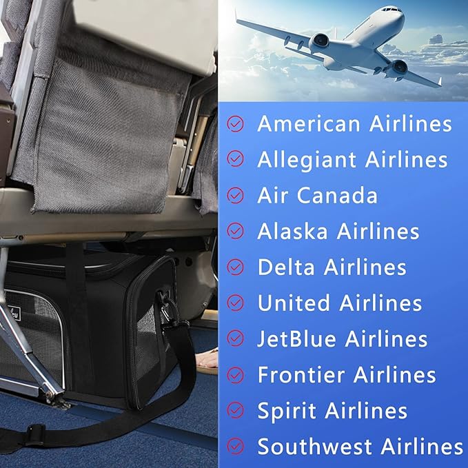 • 🐶【CHECK SIZE BEFORE PURCHASE】In order to match the airline's under-seat size, this carrier can only accommodate small dogs and cats. We recommend that you carry pets that measure 17.7 "long x11" wide x8.3 "high and weigh under 13LB cat or 9LB dog. Please do not only choose the luggage rack based on the weight, but also refer to the length and height of the pet. Maximum size requirements of major airlines for soft-sided pet carriers: ①American Airlines: 19x13x9"②United Airlines: 18x11x11"③Southwest Airlines: 18.5x13.5x8.5"④Alaska Airlines:17x11x11"⑤Air Canada:21.5x15.5x10.5"⑥Delta Air Lines: 21.5x15.5x10.5"