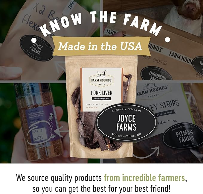 • About Farm Hounds: We believe healthier animals are happier animals. With your canine in mind, we make all of our treats nutritionally beneficial and delicious; Our close relationship with all-American family farmers who raise their animals in a humane way helps us use premium raw materials for our products