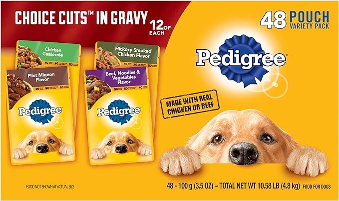 Pedigree Choice CUTS in Gravy Adult Soft Wet Dog Food, 48 Pouch Variety Pack, 3.5 oz. Pouches