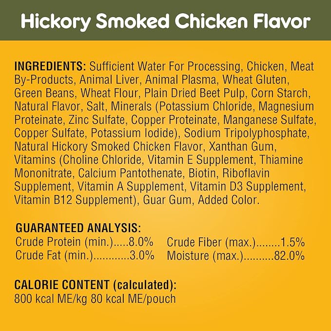 • Flavors Dogs Love: This variety pack contains 48 (3.5 oz.) pouches in the following flavors: (12) Hickory Smoked Chicken (12) Filet Mignon (12) Chicken Casserole and (12) Beef, Noodle and Vegetable