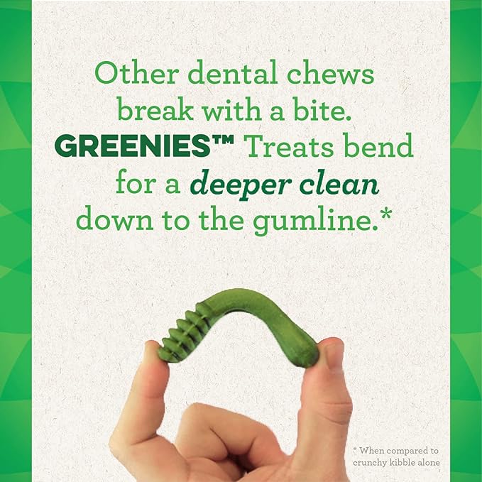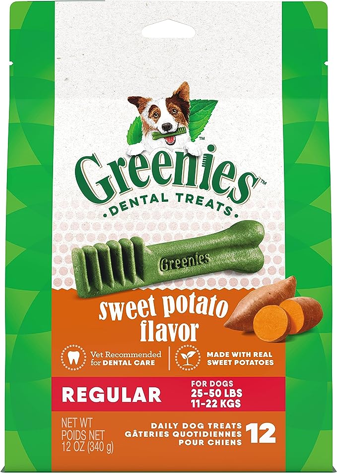 • Treat Your Pup to Cleaner Teeth: Contains (1) 12 oz. 12-count pack of GREENIES Regular Natural Dog Dental Treats in Sweet Potato Flavor