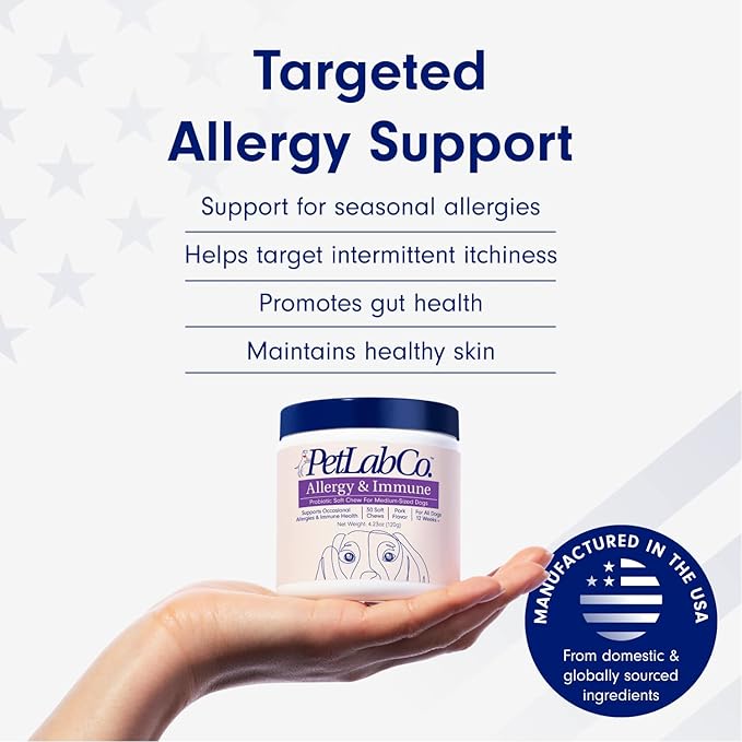 PetLab Co. Allergy & Immune Daily Probiotics for Dogs. Supports Yeast Production, Seasonal Allergies, Intermittent Itchiness, Gut & Digestive Health - 30 Chews - Available in Small, Medium, & Large