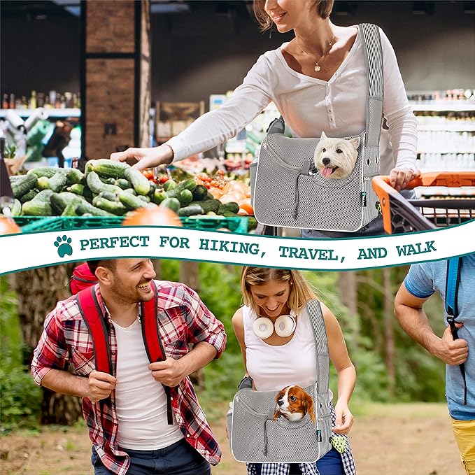 • CROSSBODY PET POUCH PURSE: The dog front carrier comes with a poop bag dispenser feature pocket, a large pocket on the back to store pet stuff, treat, food, toy, and a mesh pocket on the shoulder strap for essential personal items, phone and cards. The strap is adjustable, sturdy and durable, with a reinforced buckle and D-ring on the side for safety and convenience. This cute cat sling carrier chest is easy to wear and carry. Ideal for hands free situation just like puppy back pack and bookbag.