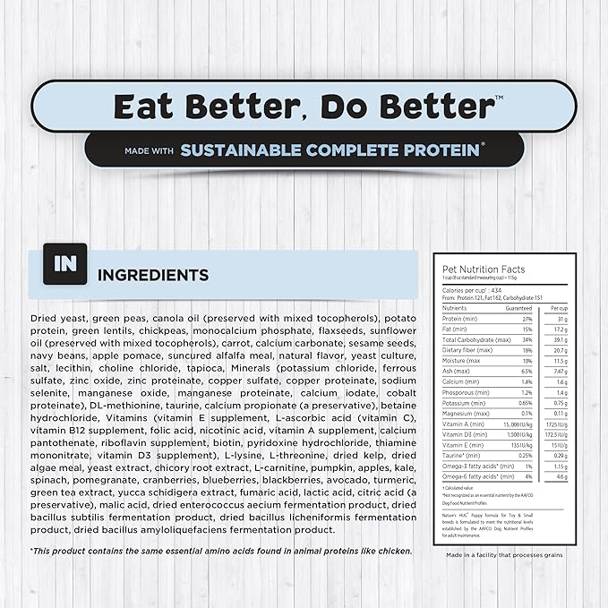 • JUST LIKE CHICKEN RECIPE – Our formula is meat free, but our sustainable complete protein and mix of other ingredientsgives our product a savory flavor that pets love!
