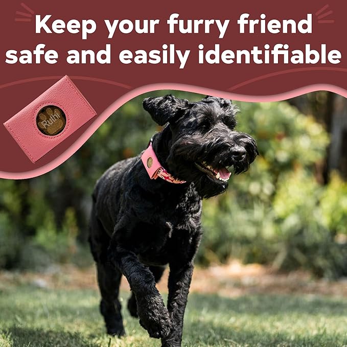 • Comfortable for your dog: The dog tag holder is made of soft and flexible vegan leather that bends and shapes to your dog's collar, providing a comfortable fit. It won't rub or irritate your dog's skin, even when they are sleeping.