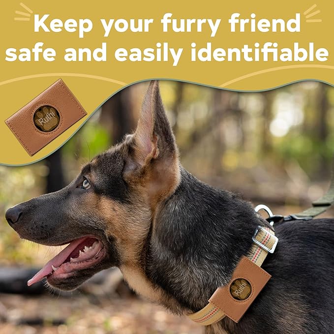 • Comfortable for your dog: The dog tag holder is made of soft and flexible vegan leather that bends and shapes to your dog's collar, providing a comfortable fit. It won't rub or irritate your dog's skin, even when they are sleeping.
