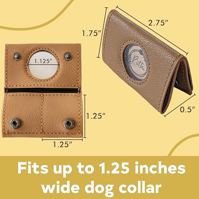 Dog Collar ID Holder - Dog Tag Silencer - No Noise Dog Tag Pouch for Dog Collar - Dog ID Tag Protector - Pockets for Dog accessories, Rabies Tags, Poop bags - Slide on Dog ID - Pet tag (Camel)
