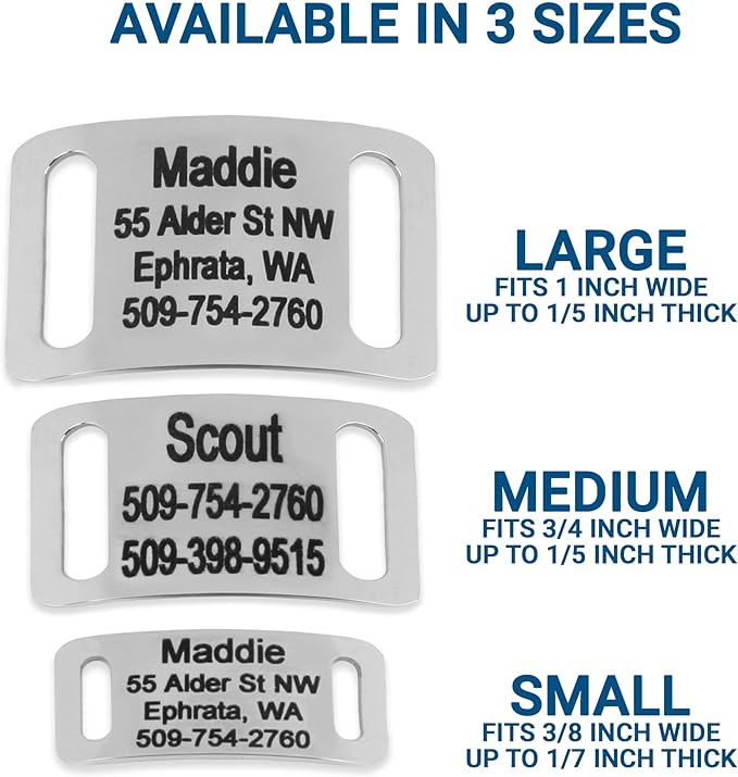GoTags Slide-On Pet ID Tags, Personalized Dog and Cat Collar Tags, Silent, No Noise Tags Made of Stainless Steel, Custom Engraved