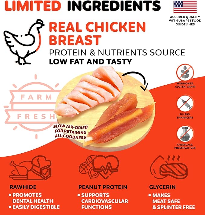• 🦷 PROMOTES DENTAL HYGIENE: With a texture designed to clean as your dog chews, these Chicken-Wrapped Sticks help combat tartar buildup, freshen breath, and promote overall dental health in your canine companion