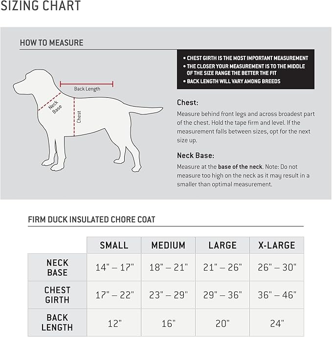 • Carhartt Firm Duck Insulated Dog Chore Coat. Durable dog coat with iconic roots for the hardest working dogs