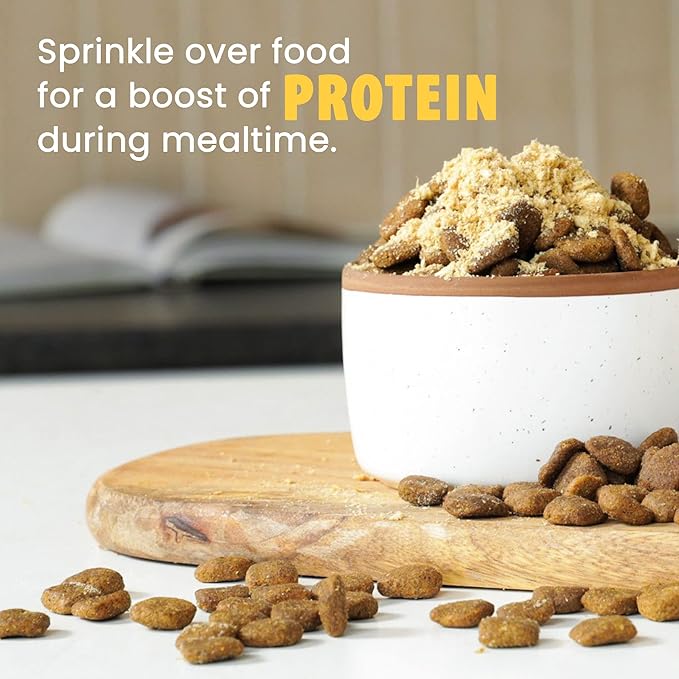 • High Protein Meal: Elevate your dog's mealtime with our high-protein meal topper, now available in two delicious flavors. This dog food topper is packed with all essential minerals, making it a perfect source of nutrition for your furry friend. Simply, sprinkle it over your dog's dry food to enhance its protein content and provide the necessary nutrients for a strong immune system, healthy skin, and shiny coat.