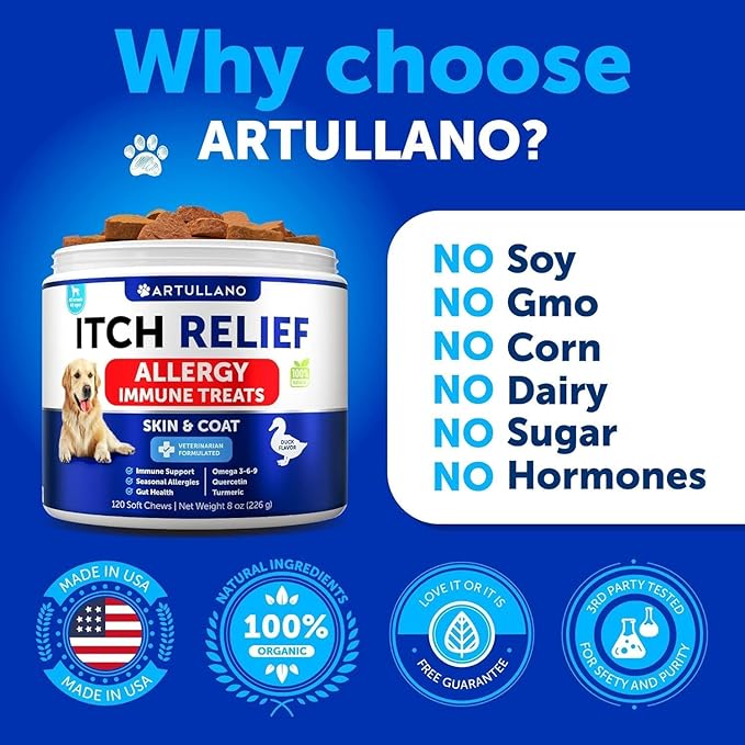 • A Brand You Can Trust: we hope you will enjoy all benefits of our allergy pills for dogs. If you have any questions, feel free to contact us 24/7. Let's keep your pet healthy together.