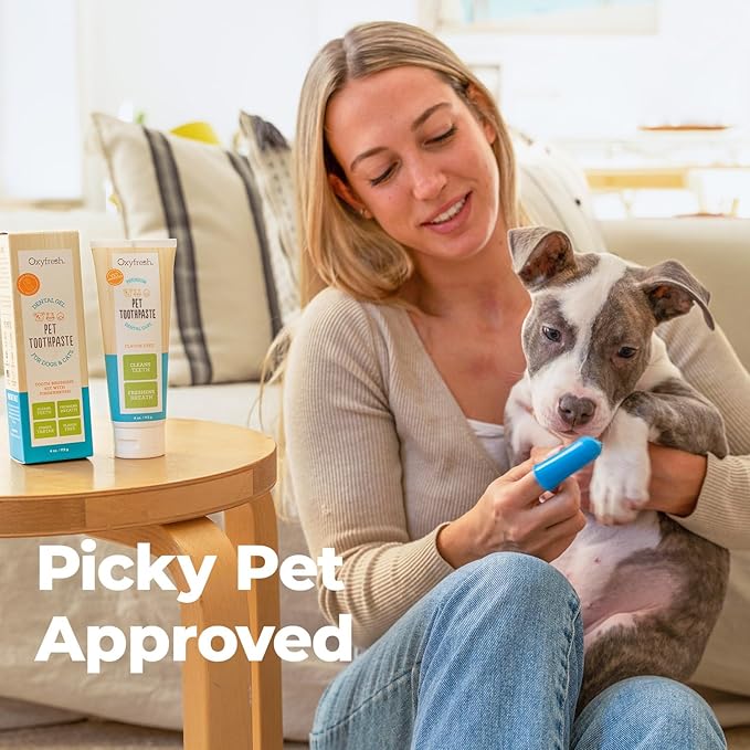 Oxyfresh Premium Dog Toothpaste and Toothbrush – Best Dog Teeth Cleaning & Dog Plaque and Tartar Fighter – Safe for Cat Toothpaste Too – Vet Formulated (4oz Pet Toothpaste + Large Finger Brush)