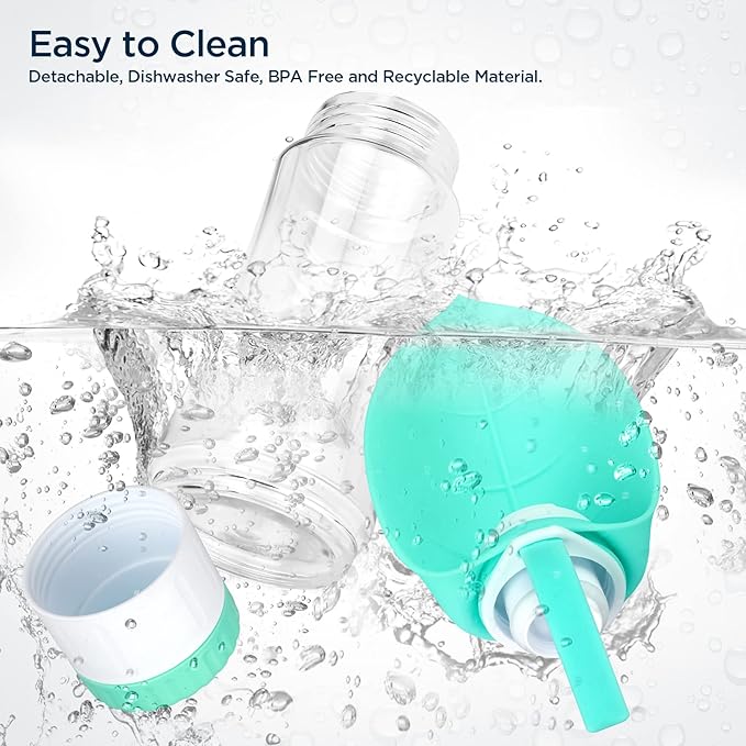 • BPA FREE DURABLE MATERIALS: This dog drinking cup is made of Tritan plastic bottle and food grade silicone.To keep your pet’s health is our top priority. Diswasher safe, recyclable and durable enough for you to use many years. You can put ice cold water in it