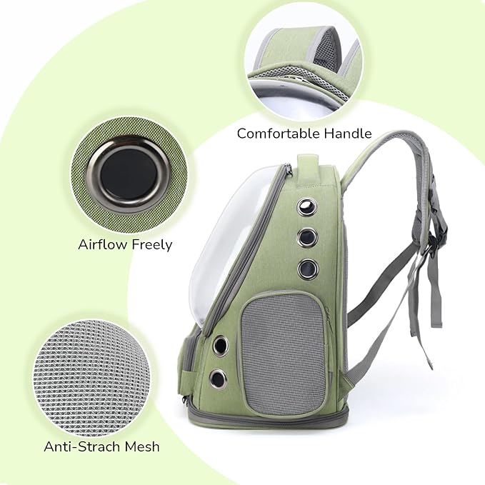 Cat Backpack Carrier for Cats and Small Dogs, Breathable Cat Bubble Backpack, Airline Approved Pet Travel Carrier for Hiking Camping & Outdoor(Green) 1
