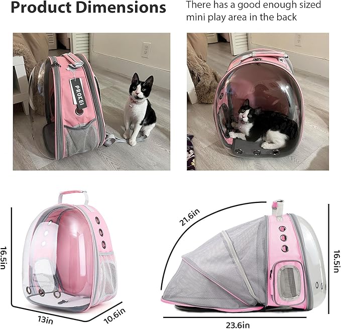 • Innovative Design: PROKEI bubble pet carrier features a unique and modern design that includes a clear bubble window, allowing your cat or small dog to enjoy the view while being safely enclosed. The bubble window provides a fascinating and interactive experience for your pet, making travel more enjoyable for both of you.