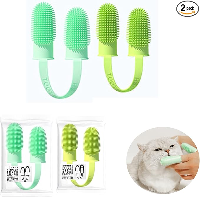 2 Pack Dog & Cat Toothbrush, Finger Toothbrush Kit,135ºSurround Fine Soft Bristles,Double-Finger Toothbrush Dental Care, Easy Teeth Cleaning for Dogs,Puppies, Cats and Small Pets