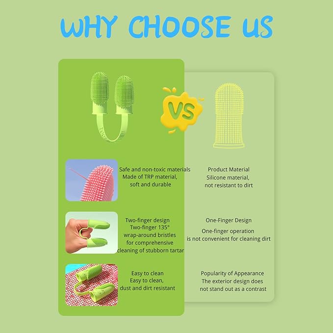 • Safe and Good Materials:Pet finger toothbrush is made of soft BPA and phthalate free material.with high resilience and good abrasion resistance.Silicone bristles are softer than traditional bristles, but abrasive enough to remove plaque.