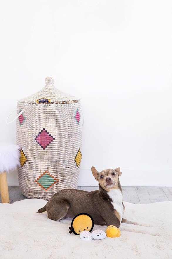 • Includes three plush toys: a big bowl of ramen noodles with chopsticks that squeaks, a squeaky egg, and two pieces of narutomaki; one that squeaks and one that crinkles
