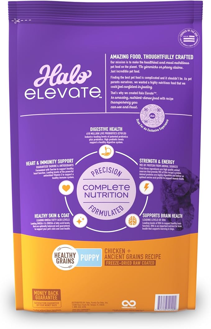 Halo Elevate Dry Dog Food, Healthy Grains Chicken Recipe, Puppy Formula, 20lb