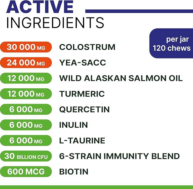 Allergy Relief Dog Chews (240 Immune Treats) - Omega 3 + Colostrum + Probiotics - Itchy Skin Relief - Seasonal Allergies - Anti-Itch & Hot Spots - Immune Supplement - Made in USA